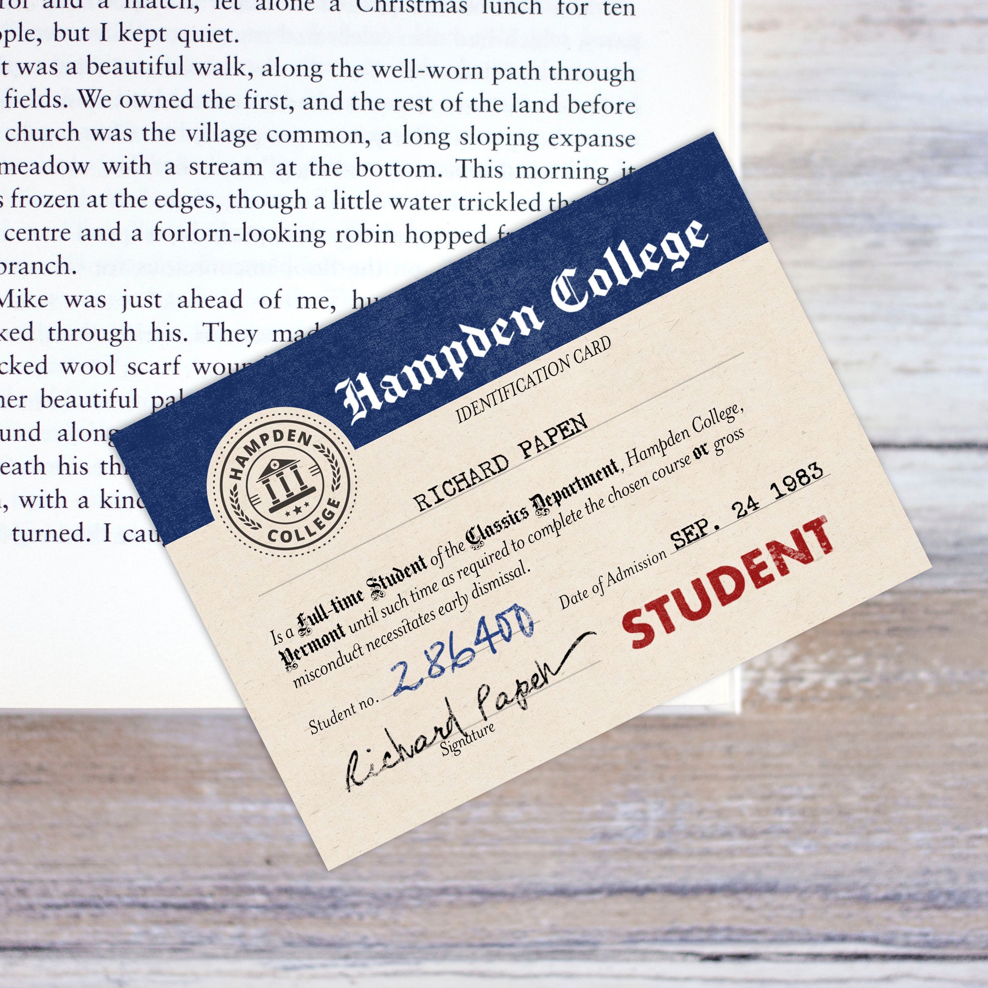 Welcome to Hampden College! With our Student ID Card Bookmark, you'll bring a piece of the university experience to your page-turning adventures. Perfect for dark academia and history enthusiasts, this bookmark will make sure you never lose your place!