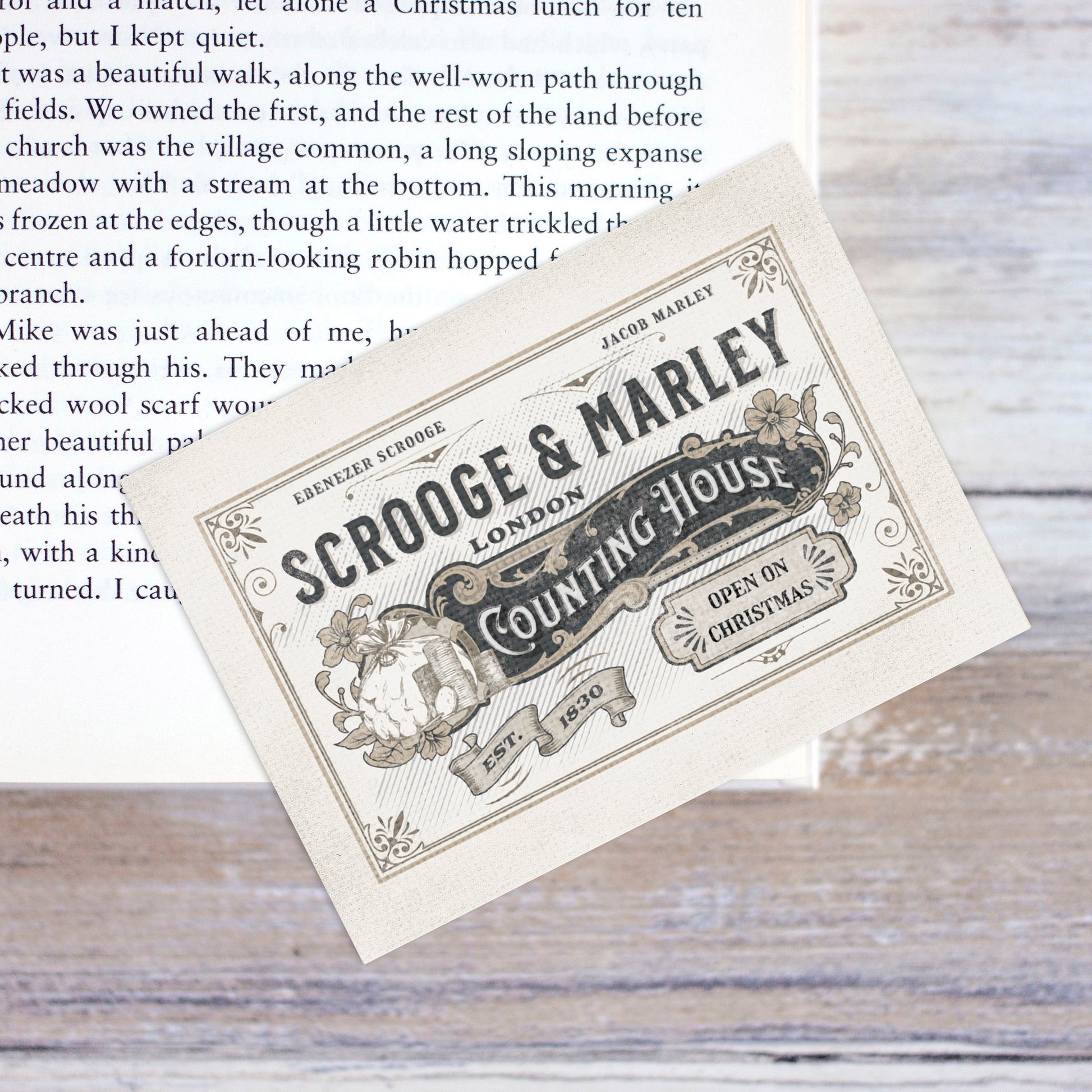 This Scrooge and Marley Trade Card Bookmark is the perfect way to experience a little Victorian-era Christmas nostalgia! Designed to look like a vintage trade card of Scrooge and Marley's counting house from Charles Dickens' A Christmas Carol, it's certain to fully immerse you into this classic Christmas story. Makes a great Secret Santa gift or stocking filler!